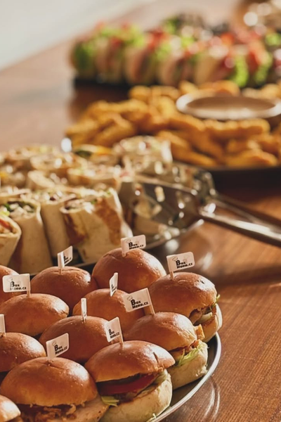 Mini burgery s trhaným hovězím, vepřovým a grilovaným kuřecím masem