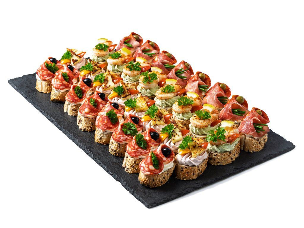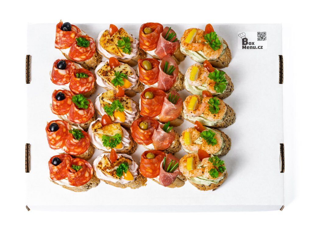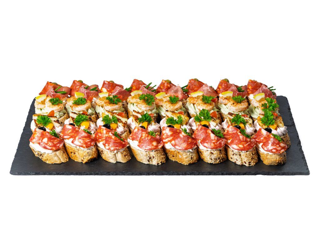 8ks kanapek s pažitkovou pomazánkou, parmskou šunkou a salámem Chorizo
