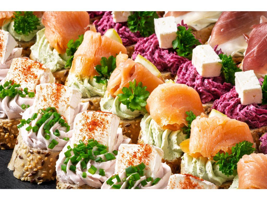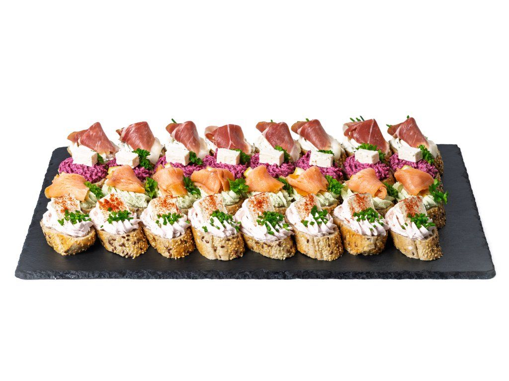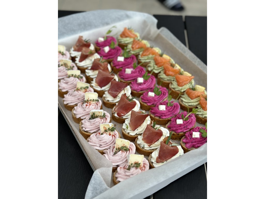8ks kanapek s pažitkovou pomazánkou a parmskou šunkou