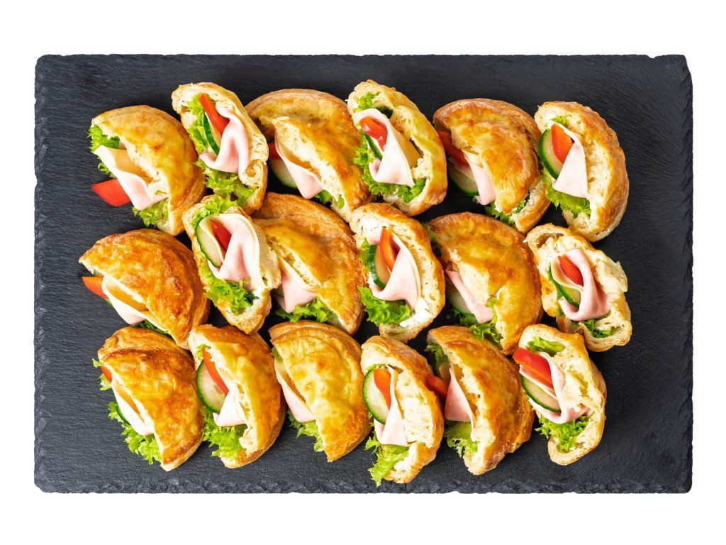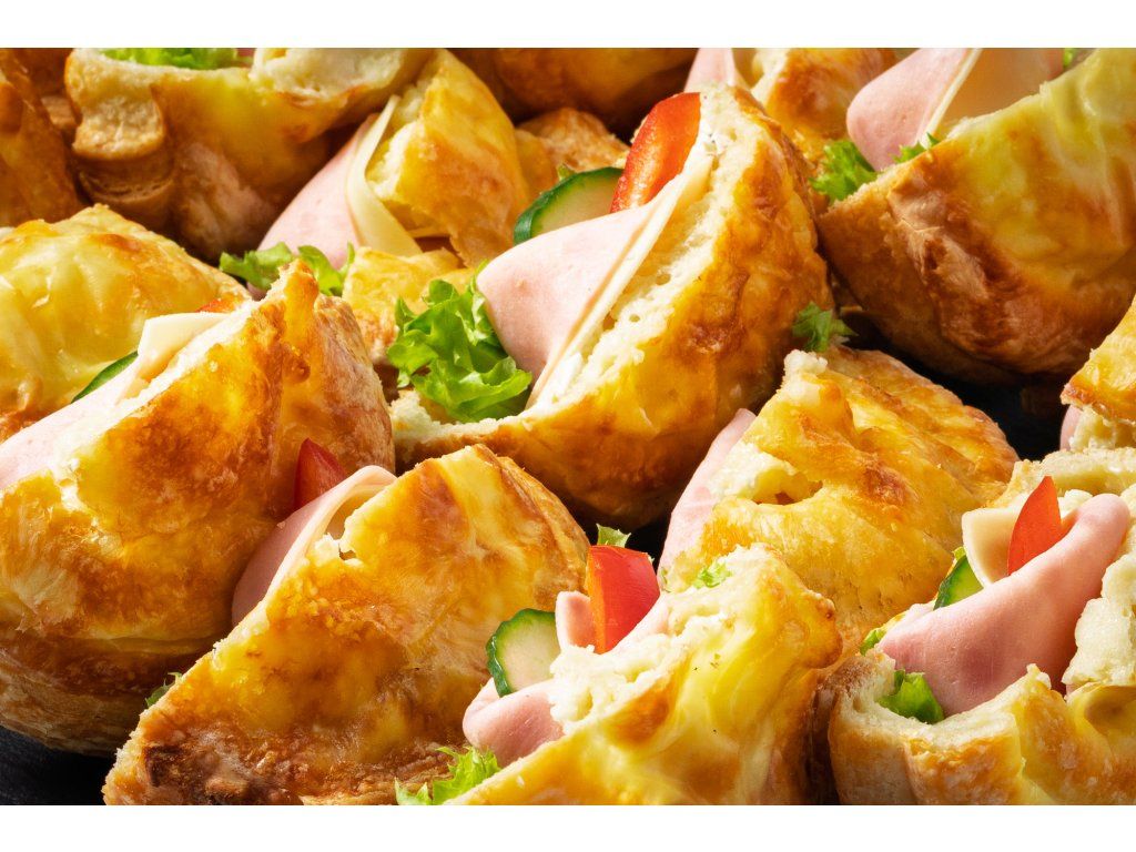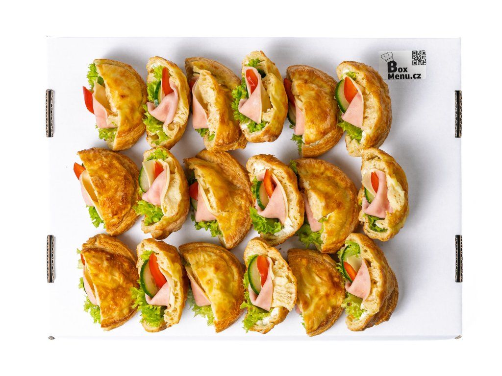 30 ks sýrový šnek, plněný šunkou, sýrem Gouda, salátem, paprikou, okurkou a pažitkovou pomazánkou