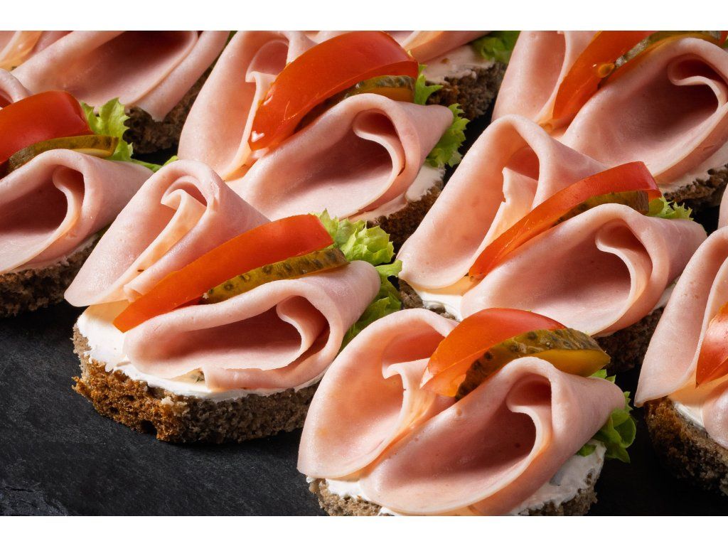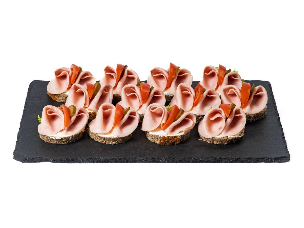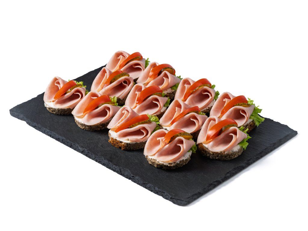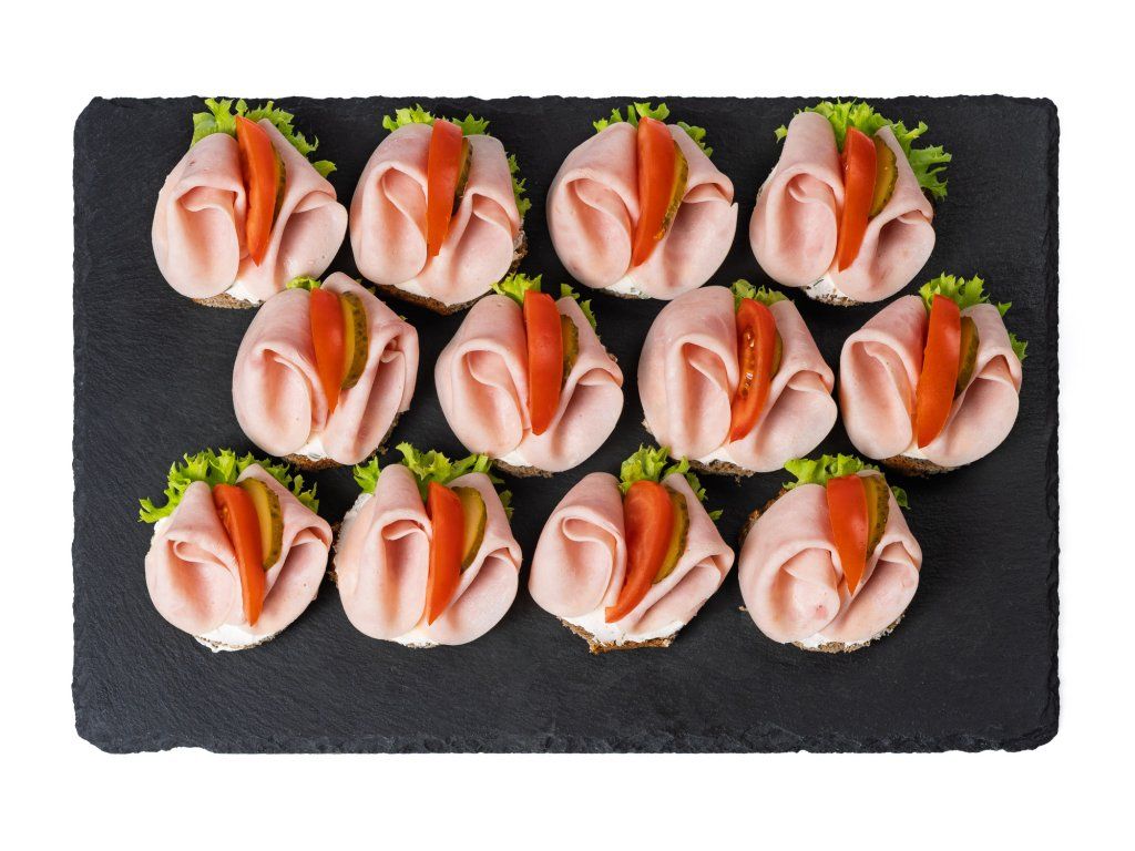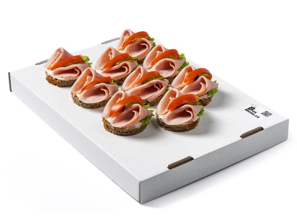 20 ks celozrnných chlebíčků se šunkou, zeleninou a pažitkovou pomazánkou