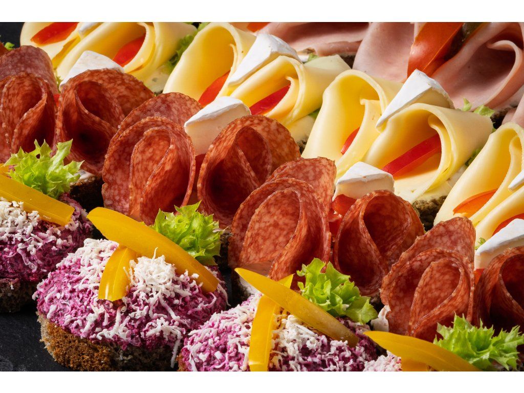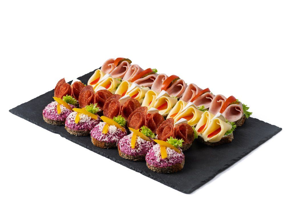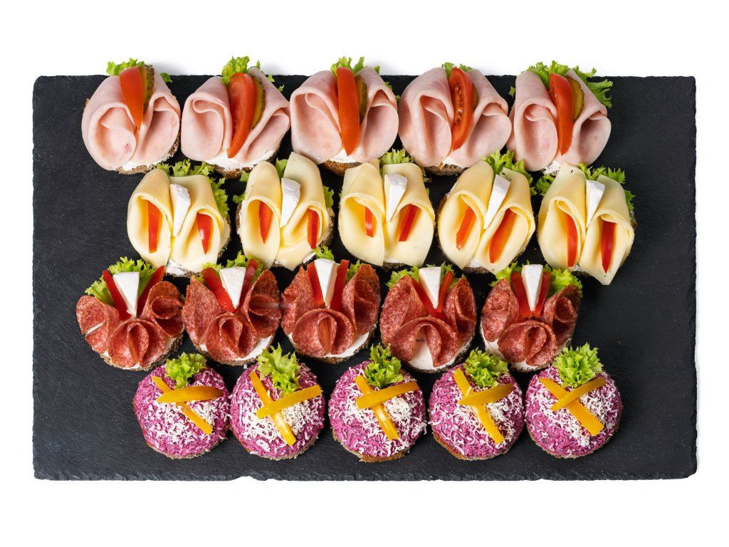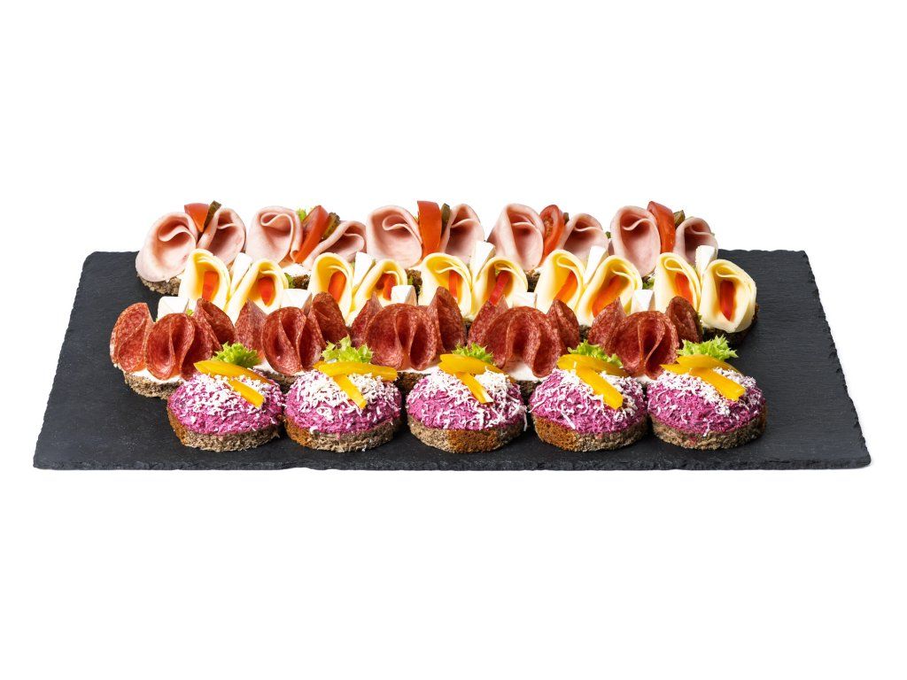 Mini chlebíčkový mix box se šunkou, sýrem a červenou řepou