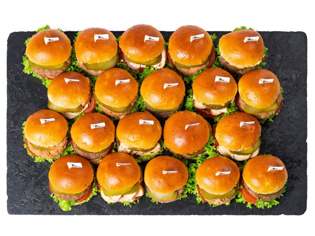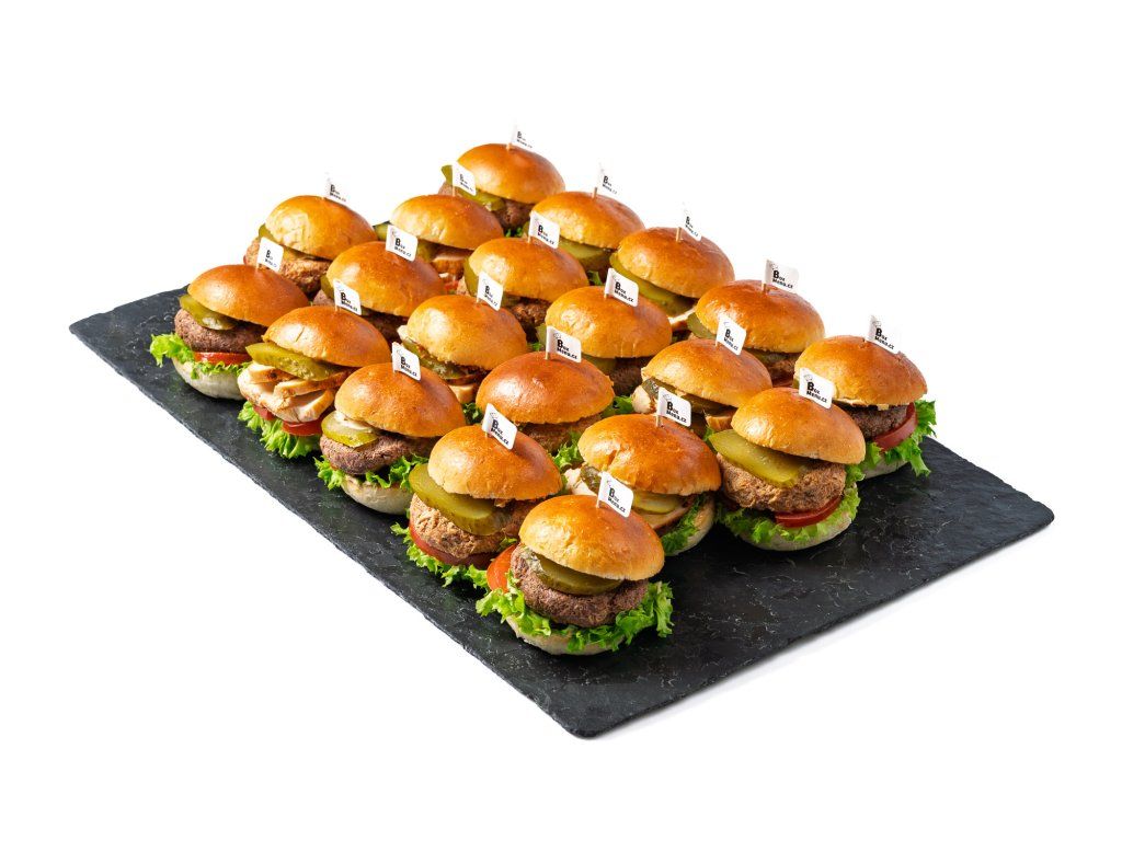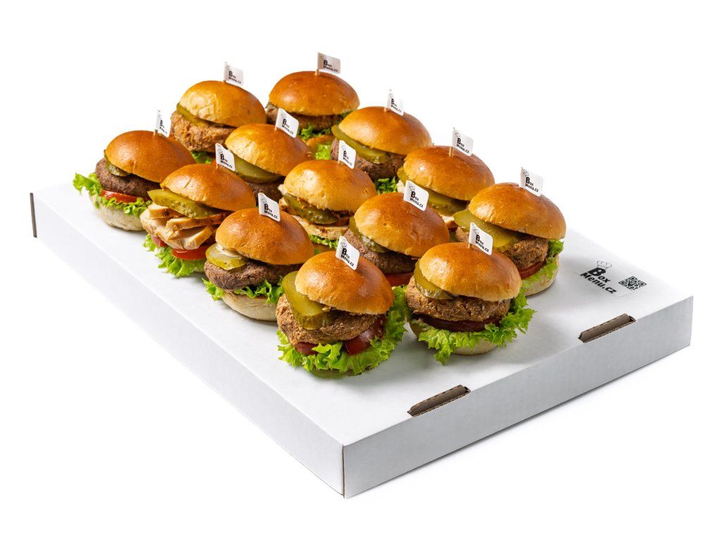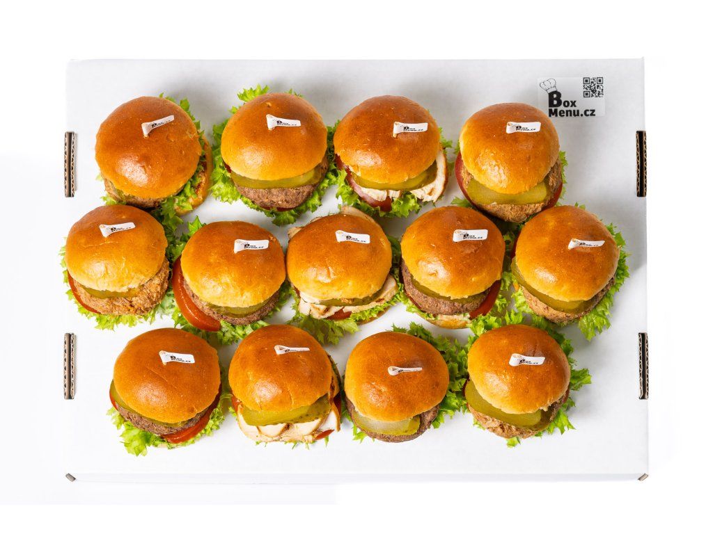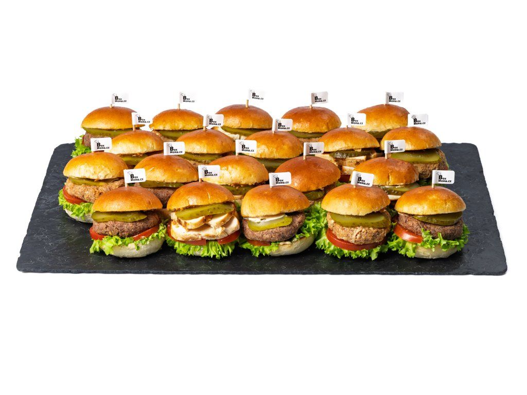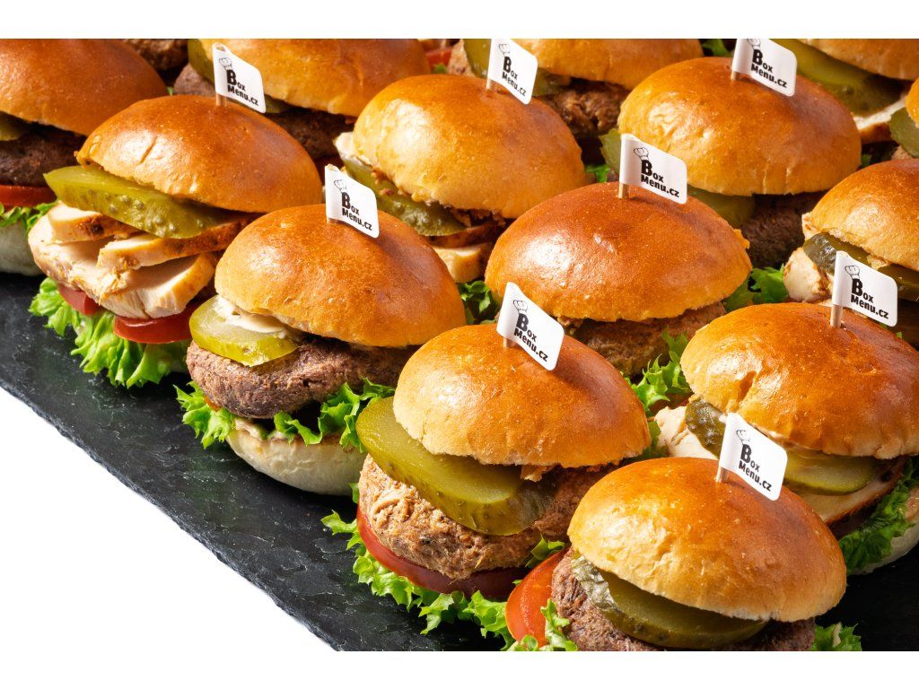 Mini burgery s trhaným hovězím, vepřovým a grilovaným kuřecím masem