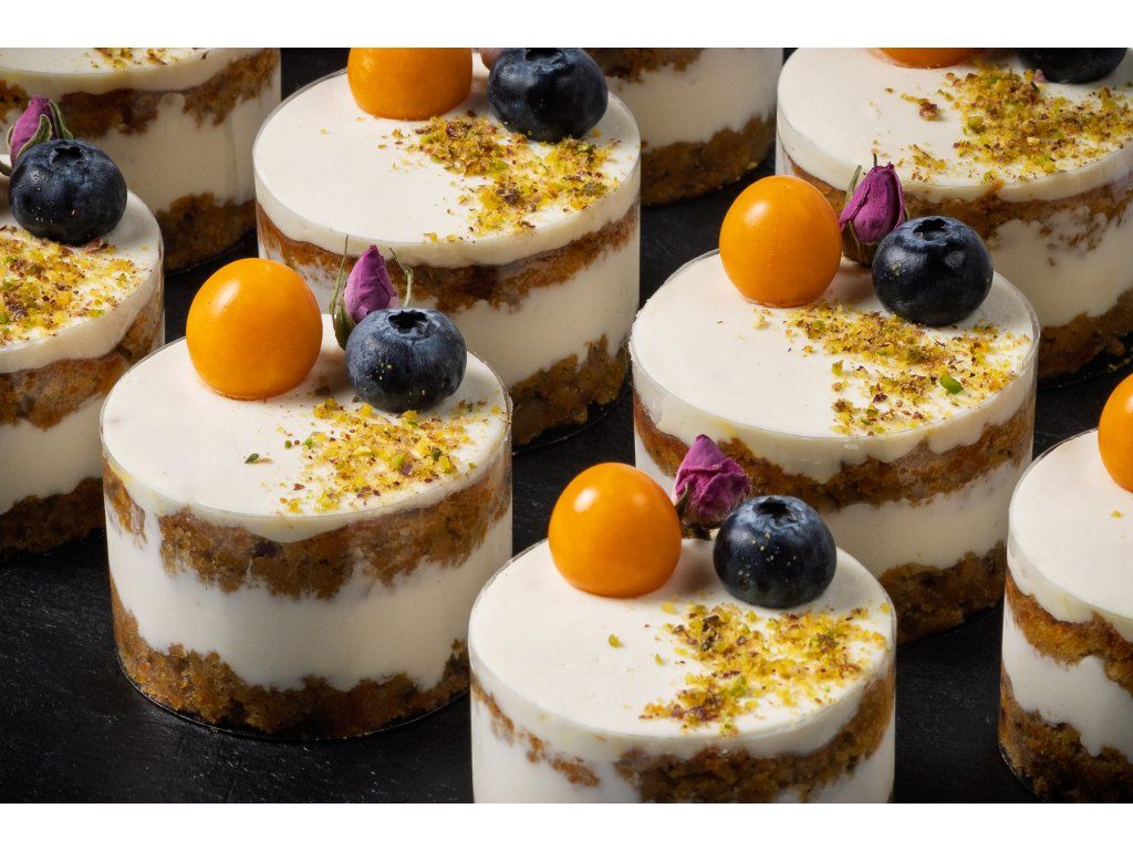 Vláčný mrkvový korpus s vlašskými ořechy a tvarohovým krémem