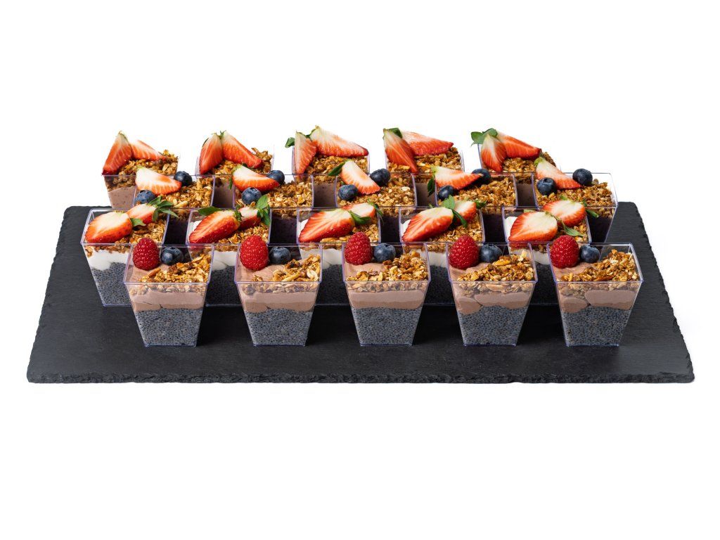 3x chia puding s domácím čokoládovým termixem, domácí granolou a ovocem